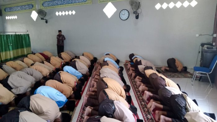 Dengan khusya' Mhd. Aqra Fasya memimpin jamaah dengan penuh ketenangan. Para siswa dan guru mengikuti rangkaian sholat dengan khidmat, mencerminkan semangat kebersamaan sekaligus menumbuhkan nilai-nilai kedisiplinan dalam beribadah.