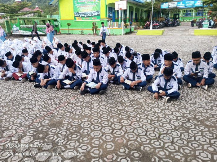 Kerinci (09/09/2025)….Suasana pagi di MTs N 6 Kerinci pada Selasa terasa khidmat dengan lantunan ayat suci Al-Qur’an yang dibacakan para siswa. Kali ini, giliran siswa-siswi kelas IX A yang mendapat kesempatan memandu kegiatan tadarus pagi, sebuah program rutin madrasah untuk menanamkan kecintaan terhadap Al-Qur’an sejak dini.