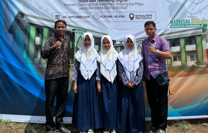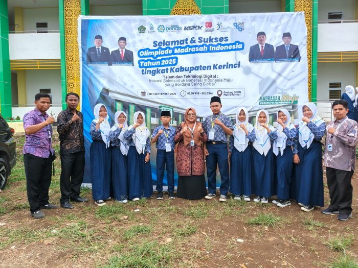 Kerinci (MTsN 6 Kerinci) Tiga siswi MTsN 6 Kerinci dengan penuh sengat ikuti Olimpiade Madrasah Indonesia (OMI) mata pelajaran Ilmu Pengetahuan Alam (IPA) thari ini Kamis tanggal 11 September 2025 bertempat di MAN 3 Kerinci. Mereka adalah Syafira, Keyla, dan Zelia, yang tampil penuh percaya diri dalam menghadapi berbagai soal berbasis konsep sains.