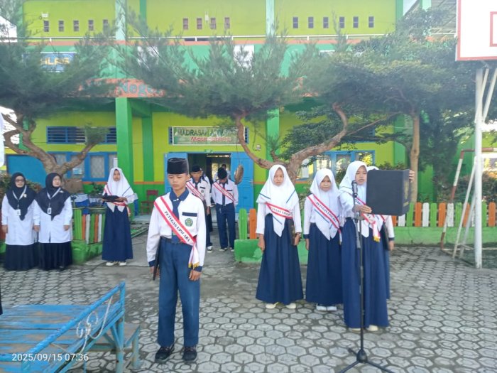 Kerinci (MTsN 6 Kerinci), Senin, 15 September 2025 di lapangan MTsN 6 Kerinci kembali menjadi saksi pelaksanaan upacara bendera yang berlangsung dengan khidmat. Kali ini, siswa-siswi kelas 8D mendapat giliran melaksanakan tanggung jawab sebagai petugas upacara.