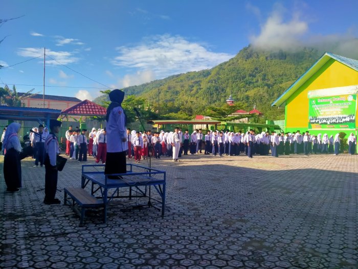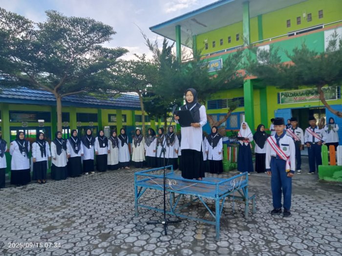 Kerinci (MTsN 6 Kerinci) Senin 15 September 2025, pelaksanaan upacara bendera di MTsN 6 Kerinci berlangsung khidmat dengan seluruh siswa mengikuti jalannya kegiatan dengan tertib. Pada kesempatan ini, Ibu Nidestri, S.Pd selaku pembina upacara menyampaikan amanat yang mengangkat tema �Pentingnya Menghormati Guru�.