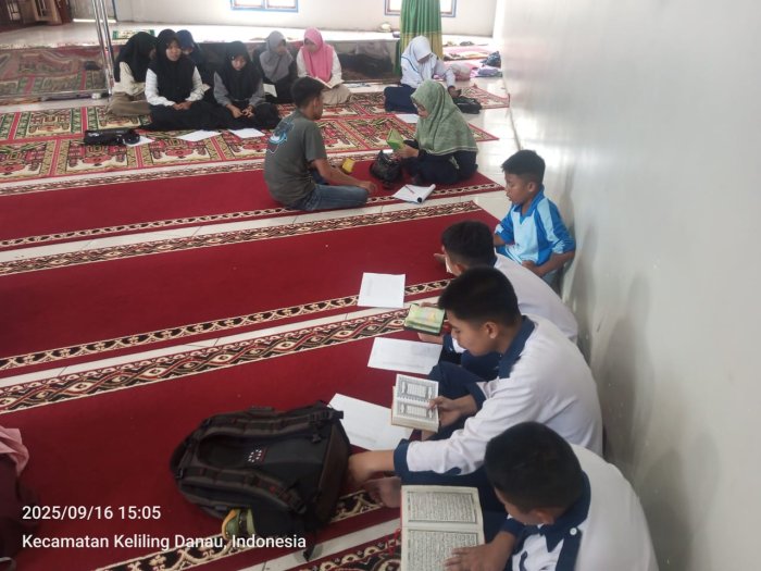 Kerinci (16/09/2025)… Kegiatan ekstrakurikuler Tahfiz Qur’an di MTsN 6 Kerinci kembali berlangsung dengan penuh semangat. Para siswa yang mengikuti ekskul ini terlihat antusias dalam menambah dan memperbaiki hafalan ayat-ayat suci Al-Qur’an.