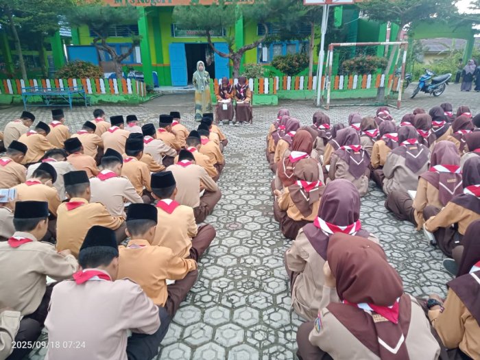 Kerinci (MTsN 6 Kerinci) Suasana pagi di MTsN 6 Kerinci terasa khidmat ketika para siswa melaksanakan kegiatan tadarus Al-Qur�an secara berjamaah di lapangan madrasah, Kamis 18 September 2025. Kegiatan rutin ini hari ini dipimpin oleh dua siswa kelas 7b yakni Aqila Fatina dan Nadira, yang mendapat kepercayaan untuk membimbing teman-temannya dalam membaca Al-Qur�an dengan tartil..
