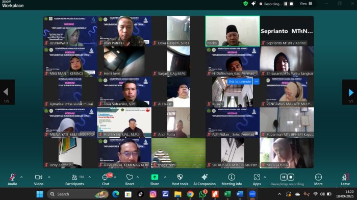Kerinci (MTsN 6 Kerinci) Tenaga pendidik dan kependidikan (PTK) MTsN 6 Kerinci kembali menunjukkan semangatnya dalam meningkatkan kompetensi dengan mengikuti Webinar Implementasi Kurikulum Berbasis Cinta yang diselenggarakan oleh PGM Indonesia Kabupaten Kerinci, pada Kamis 18 September 2025.