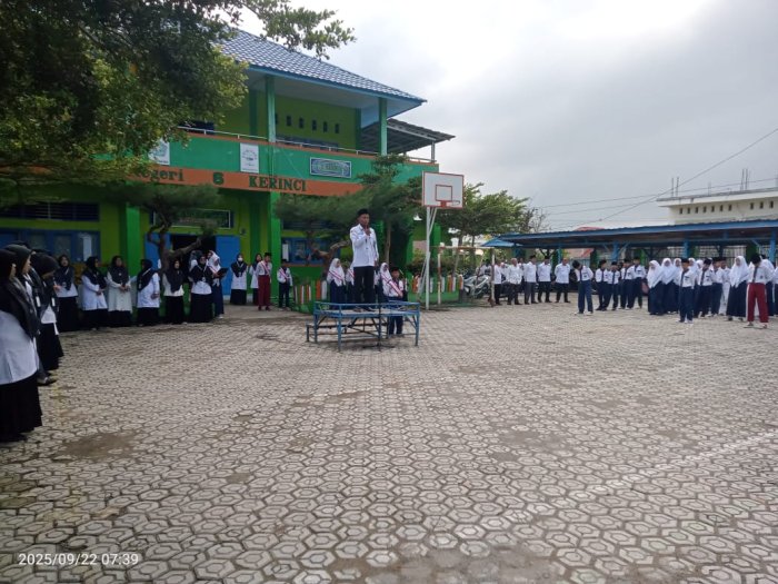 Kerinci (MTsN 6 Kerinci) Dalam amanat upacara bendera di MTsN 6 Kerinci, Senin 22 September 2025, Bapak Rian Putra H, S.Pd menyampaikan kisah cinta agung antara Ali bin Abi Thalib dan Fatimah Az-Zahra. Ia menekankan bahwa cinta sejati dalam Islam bukanlah dengan jalan pacaran, melainkan dengan menjaga kesucian hati hingga tiba waktunya dalam ikatan pernikahan.