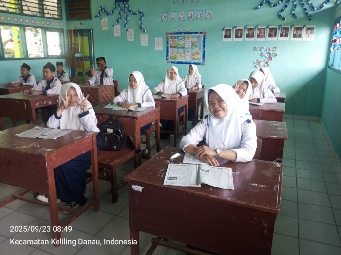 Kerinci (23/09/2025)…. Suasana belajar di salah satu ruang kelas MTsN 6 Kerinci pada hari ini tampak berbeda dari biasanya. Ibu Elvi Satrian, S. Pd, salah satu guru yang dikenal kreatif, menghadirkan materi pembelajaran dengan menggunakan media Power Point interaktif. Tampilan slide yang berwarna, disertai gambar, animasi, serta poin-poin penting yang terstruktur rapi, berhasil menarik perhatian siswa sejak awal pelajaran dimulai.