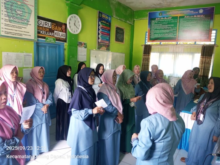 Kerinci (23/09/2025)…. Suasana penuh semangat tampak di lingkungan MTsN 6 Kerinci pada sore hari ini, ketika para guru bersama staf Tata Usaha melaksanakan latihan menyanyikan Mars MTQ. Kegiatan ini dilakukan dalam rangka persiapan pembukaan Musabaqah Tilawatil Qur’an (MTQ) tingkat Kabupaten yang akan diselenggarakan di Kecamatan Danau Kerinci Barat.