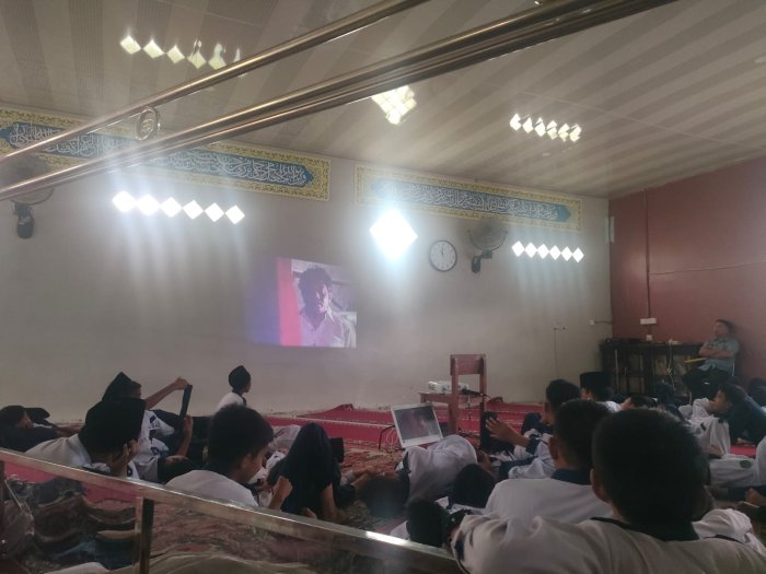 Selama pemutaran film, para siswa terlihat serius memperhatikan setiap alur cerita. Sesekali mereka menunjukkan ekspresi terkejut dan prihatin terhadap peristiwa yang digambarkan. Guru pendamping juga memberikan penjelasan tambahan agar para siswa dapat lebih memahami konteks sejarah yang ditampilkan dalam film tersebut.