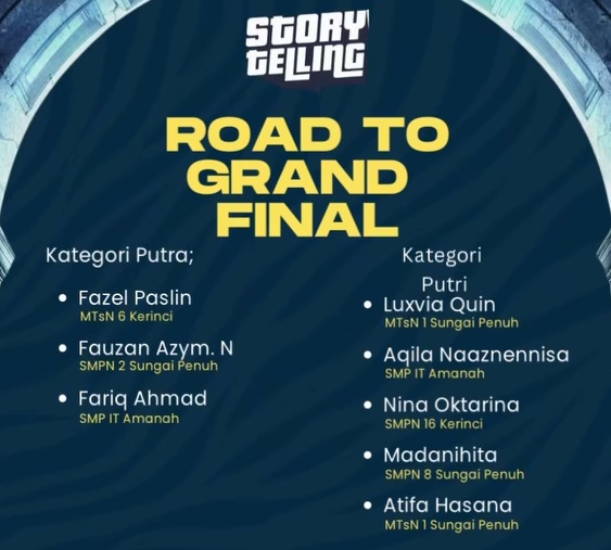 Babak final Storytelling OYISI SE Kota Sei Penuh dan Kabupaten Kerinci 2025 akan menjadi ajang bagi Fazel untuk menunjukkan kemampuan maksimalnya dan membawa nama baik MTsN 6 Kerinci di tingkat lomba yang lebih tinggi.