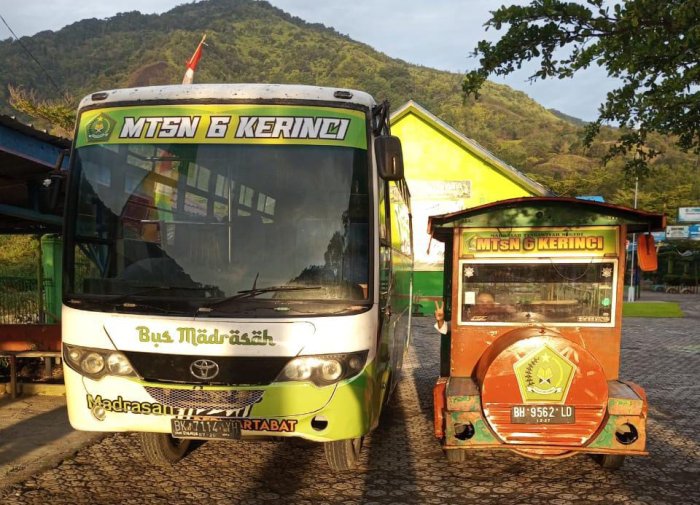Kerinci (10/10/2025)…. Pagi ini suasana halaman MTsN 6 Kerinci tampak sedikit berbeda dari biasanya. Bus antar-jemput sekolah yang biasa mengantarkan siswa dari berbagai penjuru desa tampak belum kembali ke madrasah karena sedang antri mengisi solar di SPBU. Kondisi tersebut membuat pihak madrasah mengambil langkah cepat agar kegiatan belajar mengajar tidak terganggu.