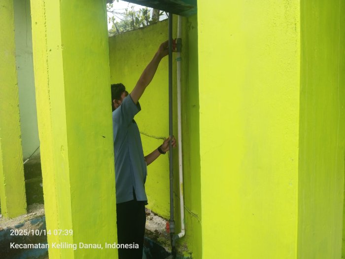 Kerinci (14/10/2025)…. Dalam suasana pagi yang tenang di MTsN 6 Kerinci, terlihat sosok Rama Pandeska dengan penuh tanggung jawab memeriksa dan mengontrol mesin air yang menjadi sumber utama aliran ke tempat wudhu madrasah. Kegiatan ini ia lakukan dengan teliti, memastikan agar air yang mengalir ke kran-kran wudhu tetap lancar dan cukup untuk digunakan seluruh siswa dan guru.