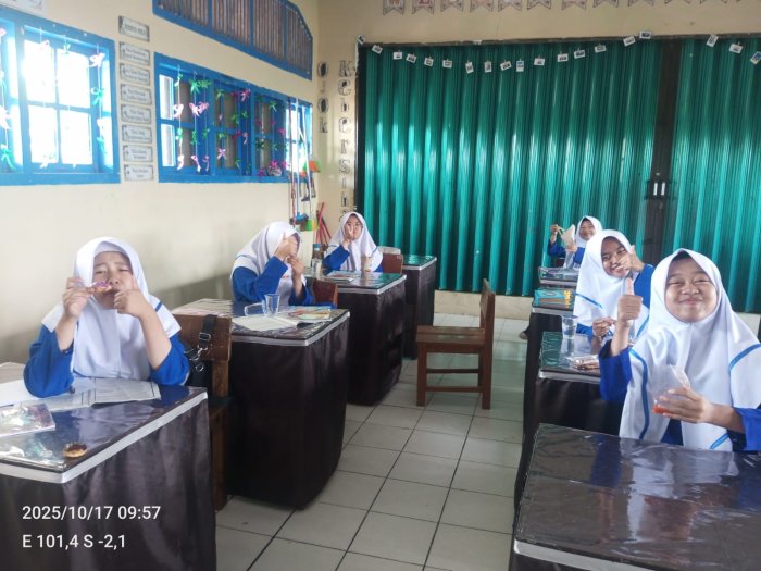 Kerinci (17/10/2025)…. Suasana ceria tampak di lingkungan MTsN 6 Kerinci pada jam istirahat siang hari ini. Setelah bel berbunyi tanda waktu istirahat tiba, para siswa dengan tertib menuju kantin sekolah untuk membeli jajanan sehat yang telah disediakan oleh pengelola kantin. Aneka menu seperti nasi goreng, roti isi, buah segar, dan minuman bergizi menjadi pilihan favorit para siswa.