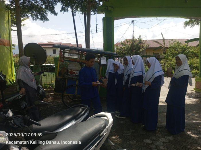 Kerinci (17/10/2025)�. Siang itu, suasana di gerbang MTsN 6 Kerinci tampak sedikit berbeda dari biasanya. Aroma gurih yang menggoda tercium kuat dari arah seorang pedagang sate yang telah menyiapkan gerobaknya sejak usai jam pelajaran. Asap tipis mengepul dari tungku pembakaran, menandai dimulainya momen yang selalu dinanti para penyuka sate di lingkungan madrasah tersebut.
