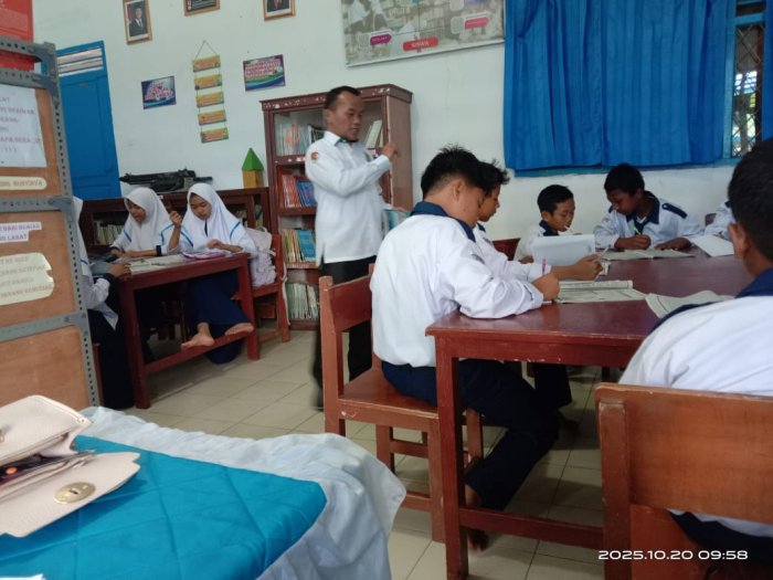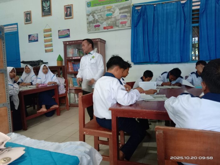 Kerinci (MTsN 6 Kerinci) Guru mata pelajaran IPS, Pak Jon Hermi, memberikan pembelajaran yang berbeda dari biasanya. Siang ini Senin 20 Oktober 2025, proses belajar dilaksanakan secara terintegrasi dengan kegiatan perpustakaan. Dalam kegiatan ini, para siswa tidak hanya menerima materi di kelas, tetapi juga diarahkan untuk mencari dan membaca sumber belajar tambahan di perpustakaan madrasah.