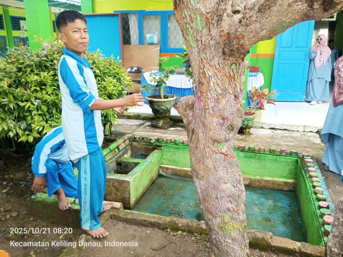 Kerinci (21/10/2025)….. Dalam upaya menanamkan nilai cinta lingkungan dan kepedulian terhadap kelestarian alam, MTsNegeri 6 Kerinci melaksanakan kegiatan penebaran bibit ikan di kolam sekolah pada Selasa (21/10). Kegiatan ini diikuti oleh seluruh siswa dengan penuh antusias, disaksikan langsung oleh guru-guru serta kepala madrasah, Ibu Hj. Tistiarni, S.Ag., M.Pd.I.
