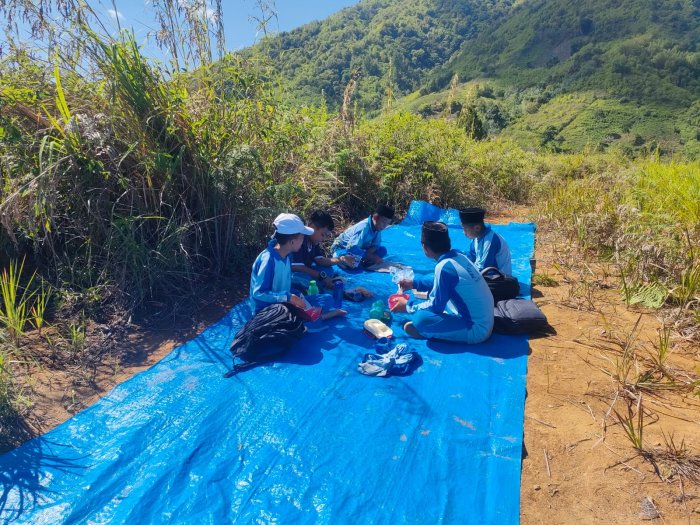 Kerinci (MTsN 6 Kerinci) – Faiz, siswa kelas VII D MTsN 6 Kerinci, tak menyembunyikan kegembiraannya usai mengikuti jelajah alam dalam rangka peringatan Hari Sumpah Pemuda di Bukit Pancuran Tiga, Sabtu (1/11/2025). Baginya, momen makan bersama di puncak bukit dengan latar pemandangan memukau menjadi pengalaman terindah yang tak akan terlupakan.