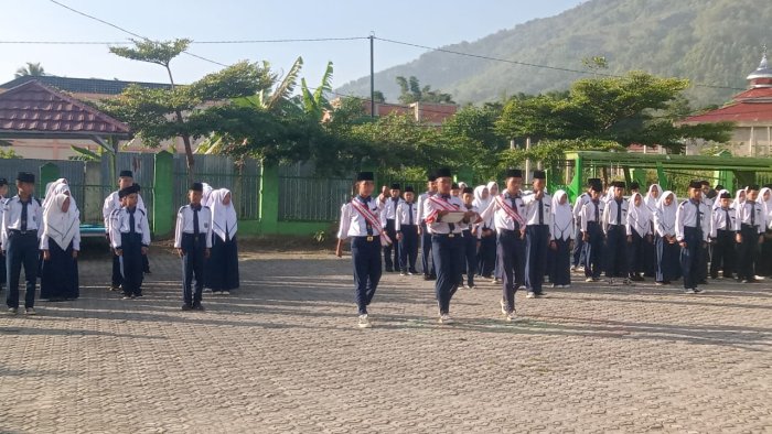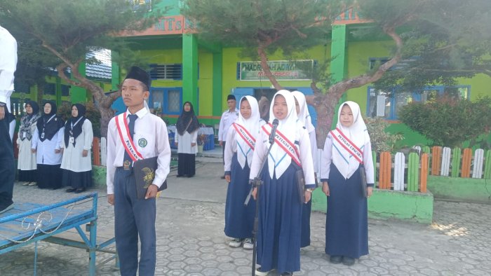 Kerinci (MTsN 6 Kerinci) Meski mendapat tugas secara mendadak, pengurus Organisasi Siswa Intra Madrasah (OSIM) MTsN 6 Kerinci berhasil melaksanakan upacara bendera dengan tertib dan khidmat pada Senin 03 November 2025.