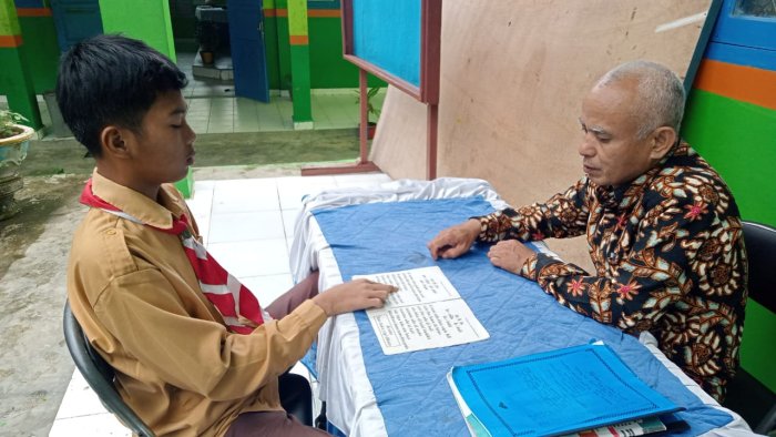 Kerinci (MTsN 6 Kerinci) Dalam upaya meningkatkan kemampuan literasi peserta didik, guru mata pelajaran Bahasa Indonesia MTsN 6 Kerinci Bapak Mhd. Jamin, S.Pd memberikan pembinaan khusus kepada siswa yang masih kurang lancar dalam membaca. Kegiatan ini dilaksanakan secara rutin di sela-sela jam pelajaran dengan suasana yang sabar dan penuh perhatian. Sebagaimana yang dilakukan pada pagi ini kamis, 06 November 2025.