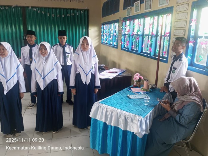 Kerinci, 11/11/2025 Dalam rangka menghadapi perlombaan paduan suara antar kelas yang akan segera digelar, siswa kelas VIII A MTsNegeri 6 Kerinci melaksanakan latihan olah vokal dengan penuh semangat. Kegiatan latihan ini dipandu langsung oleh wali kelas mereka, Ibu Febrita Melati Setiawan, S. Pd, yang dengan sabar memberikan arahan serta motivasi kepada para siswanya.
