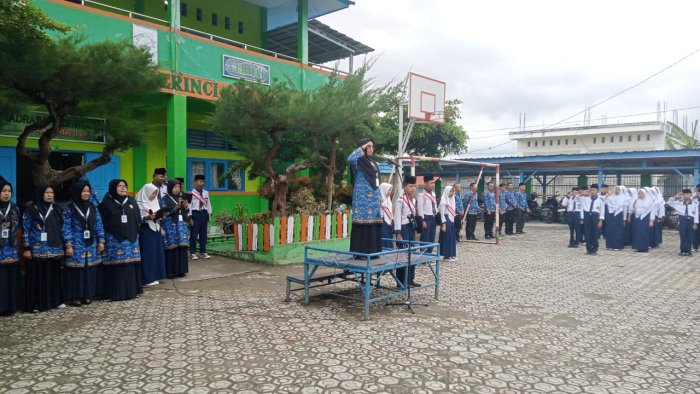 Sejak pagi, para siswa kelas 9A telah bersiap di lapangan upacara untuk memastikan seluruh rangkaian kegiatan berjalan lancar. Mulai dari pengibar bendera, pemimpin upacara, pembaca doa, hingga pemandu acara, semua menjalankan perannya dengan penuh kesungguhan. Latihan yang telah dilakukan sebelumnya terbukti membuahkan hasil, terlihat dari gerakan yang kompak dan pelaksanaan tugas yang rapi.