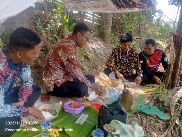 Setibanya di ladang, kegiatan diawali dengan makan bersama. Masing-masing membawa makanan secukupnya dan disantap bersama di bawah rindangnya pepohonan. Canda tawa mulai terdengar, menandakan suasana hati yang mulai cair dari tekanan pekerjaan sehari-hari. Kebersamaan itu makin lengkap ketika sebagian dari mereka mulai menyiapkan jagung dan ubi kayu untuk dibakar bersama.