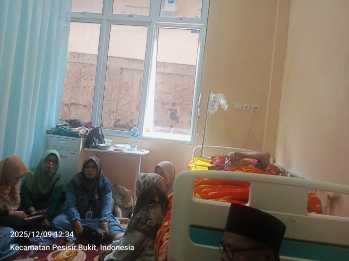 Rombongan guru dan tenaga kependidikan MTsN 6 Kerinci tiba di rumah sakit dengan penuh kehangatan. Mereka disambut hangat oleh keluarga Ibu Bastina Jaya yang tampak terharu atas perhatian dan kepedulian rekan-rekan sejawat. Suasana haru dan kekeluargaan begitu terasa ketika para guru memberikan doa, semangat, serta ucapan agar orang tua beliau segera diberi kesembuhan oleh Allah SWT.