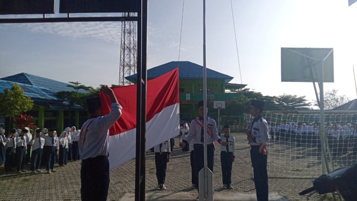 Kerinci (MTsN 6 Kerinci) OSIM dan Pasbin MTsN 6 Kerinci sukses melaksanakan upacara bendera pada awal semester genap tahun pelajaran 2025-2026. Kegiatan dilaksanakan pada Hari ini Senin, 5 Januari 2026 di lapangan MTsN 6 Kerinci dan berlangsung tertib serta khidmat.