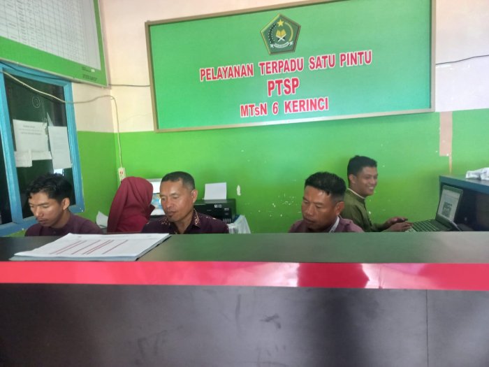 Melalui fasilitas Pelayanan Terpadu Satu Pintu (PTSP), MTsN 6 Kerinci berupaya memangkas birokrasi yang panjang. Segala urusan mulai dari administrasi persuratan, mutasi siswa, hingga konsultasi pendidikan diarahkan melalui satu loket resmi. Hal ini sejalan dengan program transformasi digital Kementerian Agama yang terus digaungkan hingga ke tingkat Madrasah.