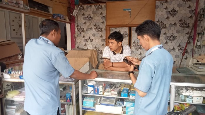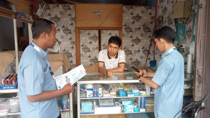 Dalam dokumentasi yang ada, terlihat dua orang anggota panitia sedang berdiskusi intensif dengan pemilik toko di depan etalase yang berisi berbagai perlengkapan alat tulis kantor (ATK). Salah satu panitia tampak menunjukkan draf dokumen atau brosur PMBM dan spanduk untuk dikonsultasikan mengenai teknis penggandaan dan desainnya.