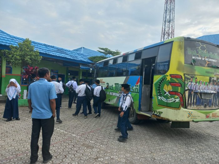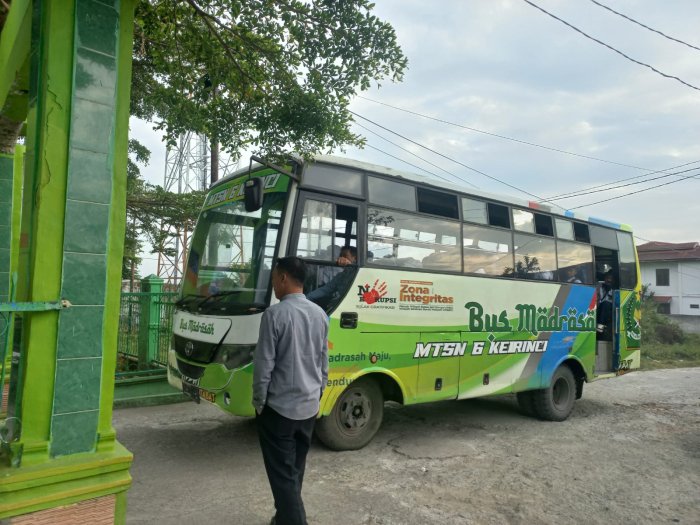 Kerinci, 27/01/2026; MTsN 6 Kerinci menyediakan layanan antar jemput siswa menggunakan Bus Madrasah sebagai bentuk komitmen dalam meningkatkan keselamatan, kedisiplinan, dan kenyamanan peserta didik dalam mengikuti kegiatan belajar mengajar.