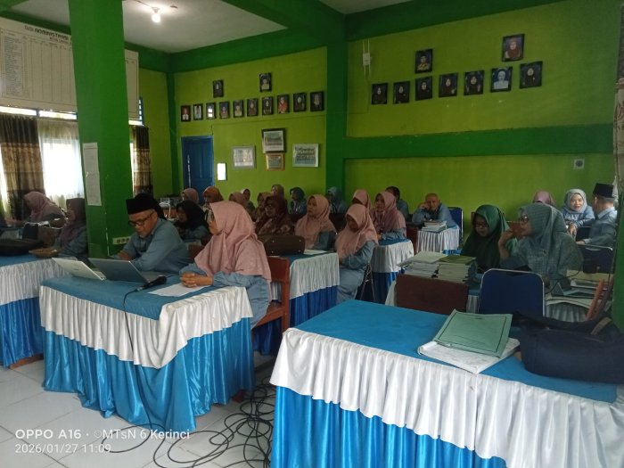 Kerinci, 27/01/2026; MTsN 6 Kerinci menggelar rapat koordinasi terkait persiapan kegiatan Expo dan Pentas Seni Tahun 2026 sebagai langkah awal dalam mematangkan perencanaan dan pelaksanaan kegiatan tersebut. Rapat dilaksanakan di lingkungan MTsN 6 Kerinci dan dihadiri oleh kepala madrasah, dewan guru, serta panitia pelaksana.
