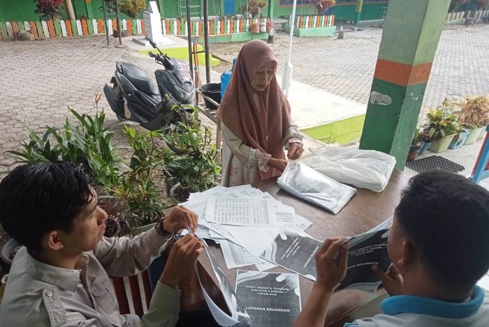 Dalam kegiatan yang berlangsung di area lingkungan Madrasah tersebut, terlihat pengurus dengan teliti menyusun lembaran-lembaran laporan keuangan untuk dibagikan kepada anggota. Fokus utama dari persiapan ini adalah memastikan validitas data dan kerapihan administrasi sebelum diserahkan dalam forum resmi.