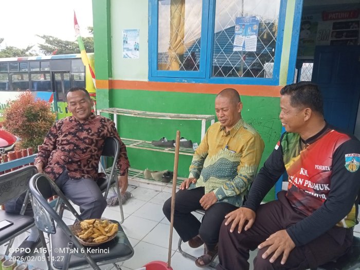Kerinci (Humas MTsN 6 Kerinci) - Suasana hangat dan penuh keakraban tampak di MTsN 6 Kerinci menjelang waktu absen pulang sekolah. Guru dan tenaga kependidikan memanfaatkan waktu tersebut untuk berbincang santai sebagai sarana mempererat kebersamaan dan silaturahmi, Rabu, 05 Februari 2026.