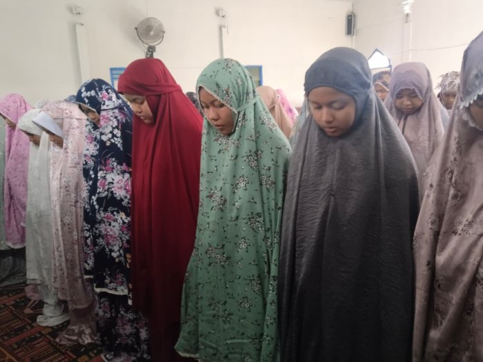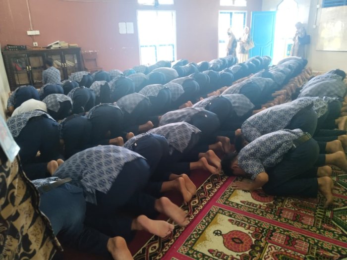 Kerinci (MTsN 6 Kerinci) - Suasana penuh kesabaran dan kekhusyukan mewarnai pelaksanaan sholat Dzuhur berjamaah di Musholla MTsN 6 Kerinci pada Rabu, 1 April 2026. Meski sempat terkendala kekurangan air untuk wudhu, para siswa dengan sabar menunggu hingga air tersedia, sehingga tetap dapat melaksanakan ibadah bersama meskipun waktu pelaksanaannya sedikit lebih lambat dibandingkan hari-hari sebelumnya.
