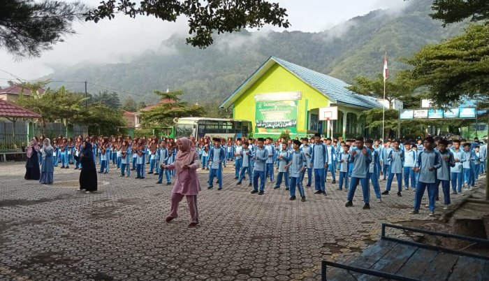 Suasana ceria menyelimuti halaman Madrasah saat ratusan siswa yang mengenakan seragam olahraga biru serempak mengikuti gerakan instruktur di bagian depan. Di bawah naungan perbukitan Kerinci yang asri, kegiatan ini bertujuan untuk mengembalikan kebugaran fisik serta memotivasi semangat belajar siswa setelah menjalani masa libur lebaran.