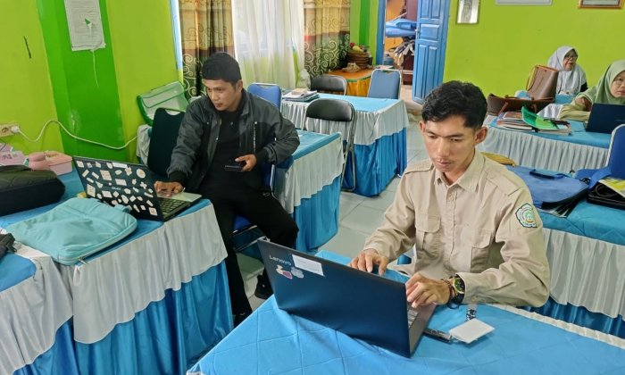 Kegiatan ini dipusatkan di ruang guru madrasah, di mana tim teknisi dan proktor bekerja keras memastikan setiap perangkat yang akan digunakan oleh siswa kelas IX berada dalam kondisi prima. Pengecekan ini meliputi kesiapan hardware, stabilitas koneksi internet, hingga kompatibilitas sistem operasi terhadap aplikasi ujian.