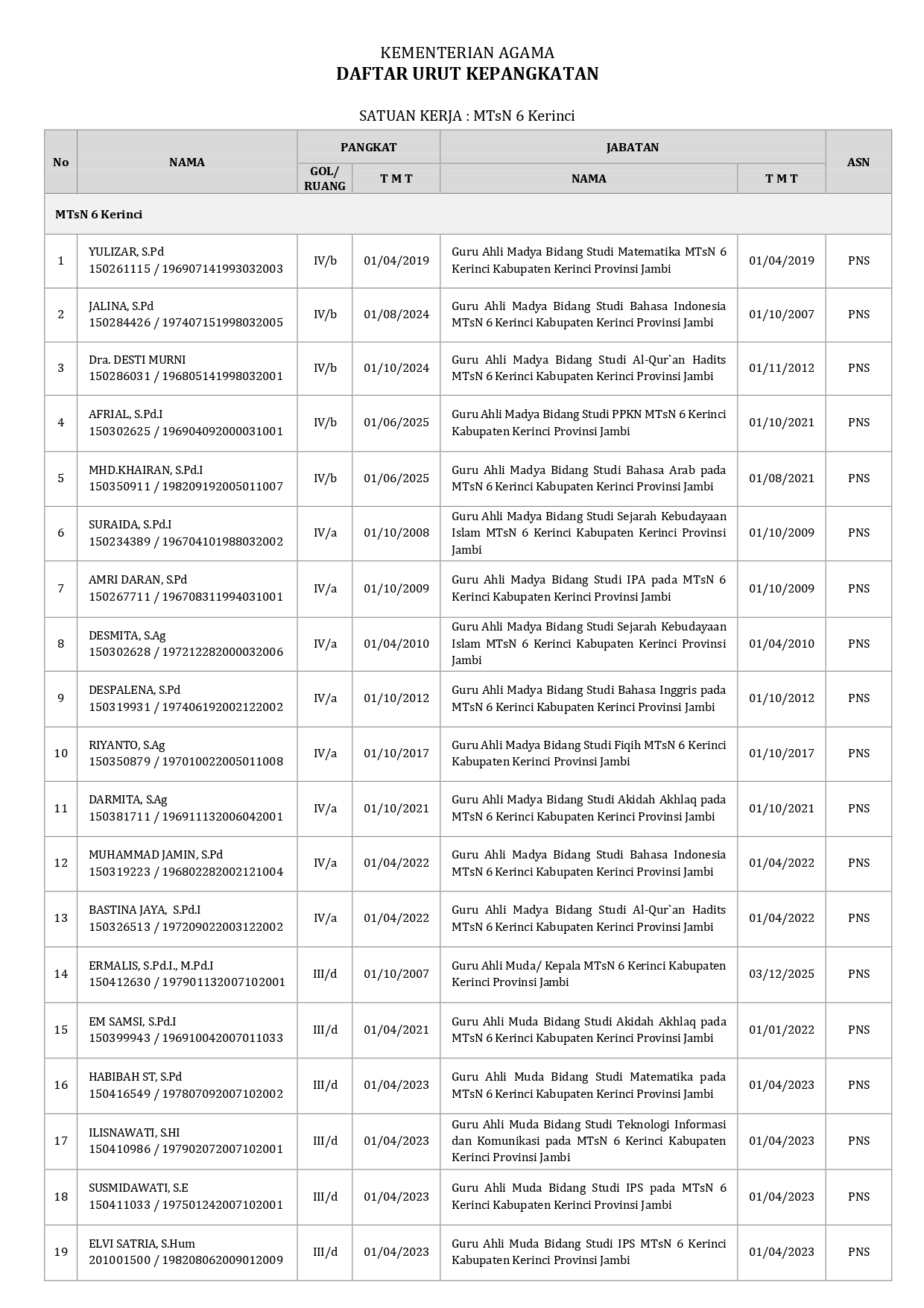 Selamat Datang di Website Resmi MTSN 6 Kerinci # Jln. Padang Baru, Desa Permai Baru, Tanjung Pauh Hilir, Kecamatan Danau Kerinci Barat, Kabupaten Kerinci, Provinsi Jambi # MTsN 6 Kerinci Menerima Peserta Didik Baru Tapel 2025/2026 # Madrasah Hebat Bermartabat # Selamat Datang di Website Resmi MTsN 6 Kerinci
