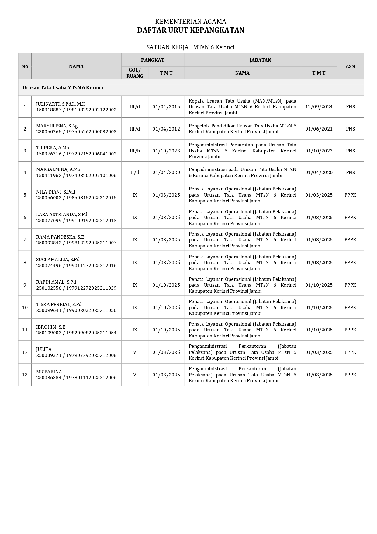 Selamat Datang di Website Resmi MTSN 6 Kerinci # Jln. Padang Baru, Desa Permai Baru, Tanjung Pauh Hilir, Kecamatan Danau Kerinci Barat, Kabupaten Kerinci, Provinsi Jambi # MTsN 6 Kerinci Menerima Peserta Didik Baru Tapel 2025/2026 # Madrasah Hebat Bermartabat # Selamat Datang di Website Resmi MTsN 6 Kerinci