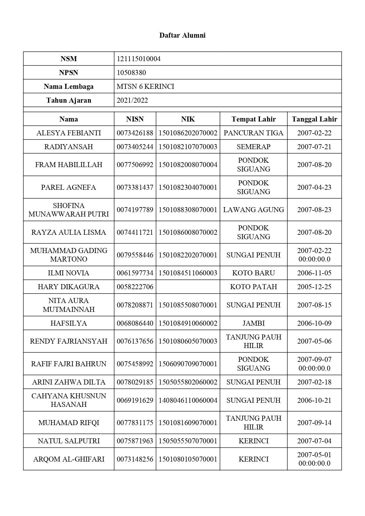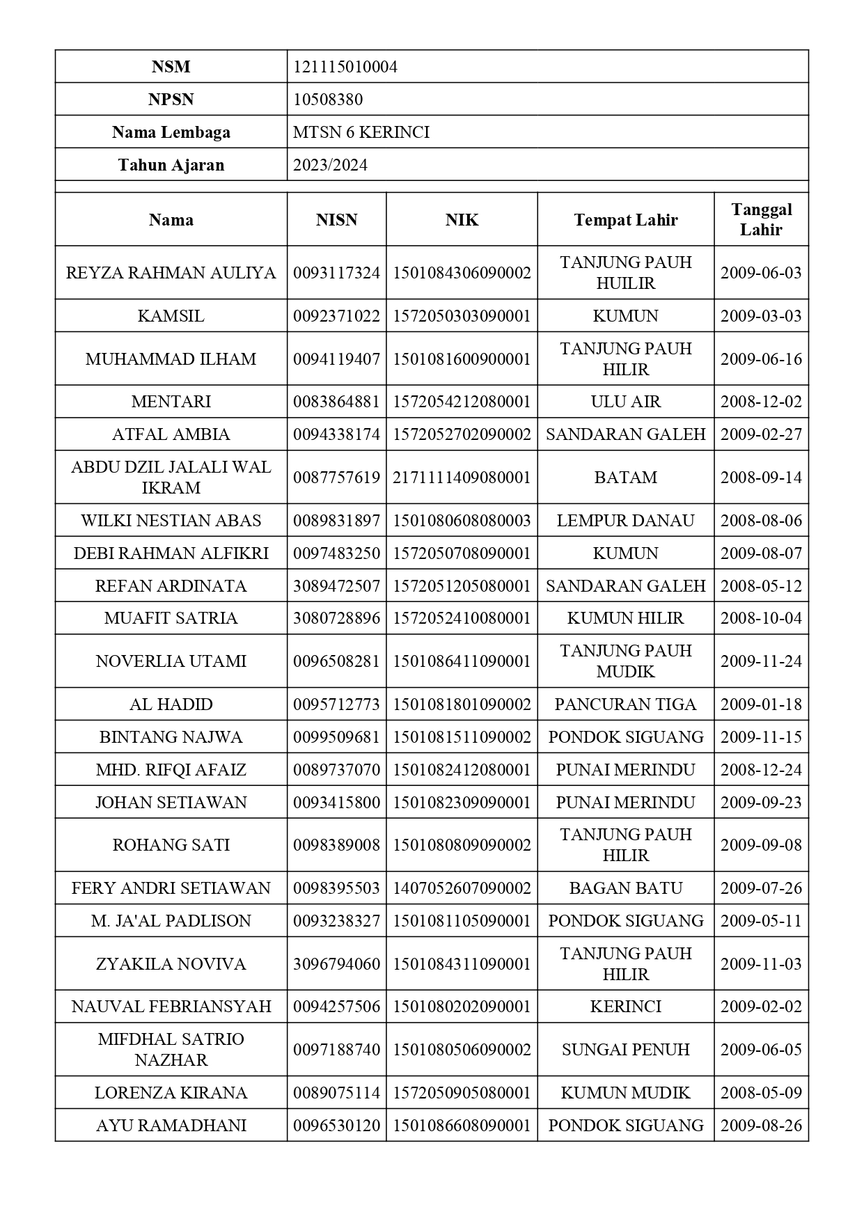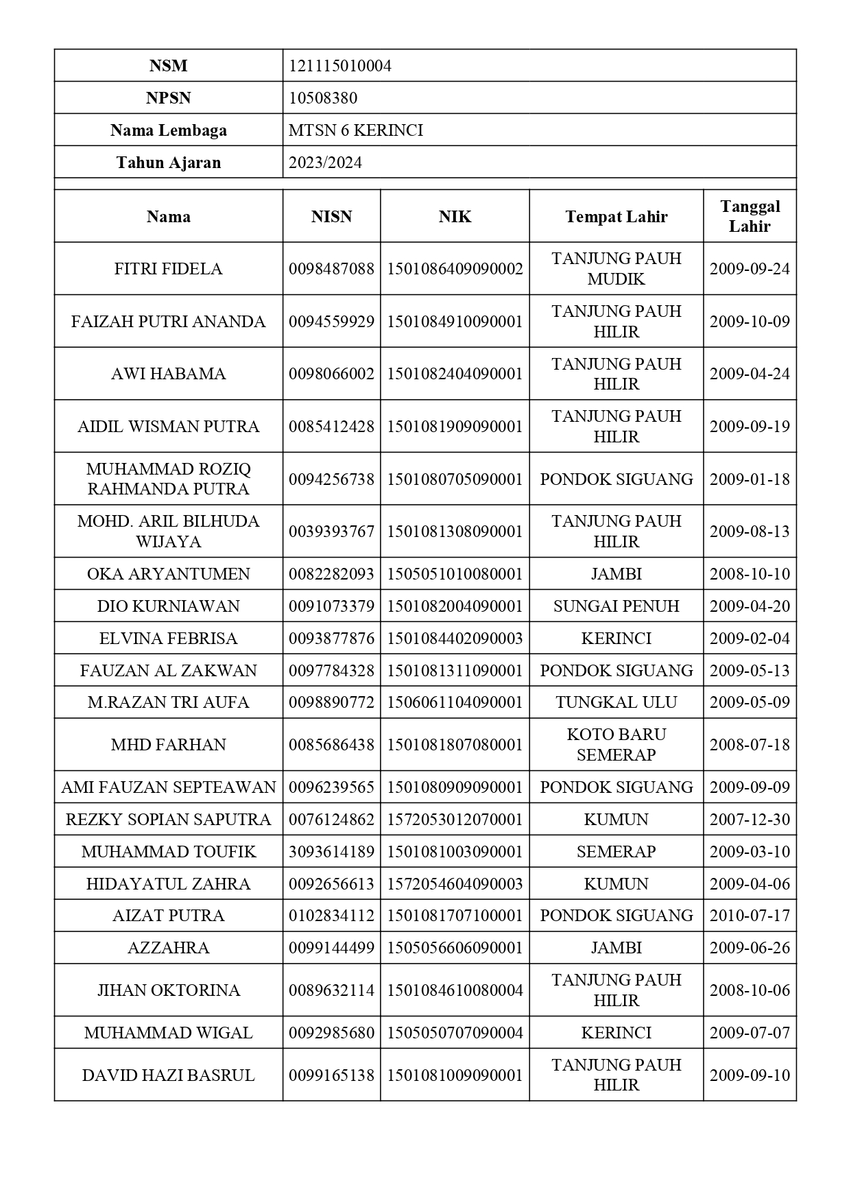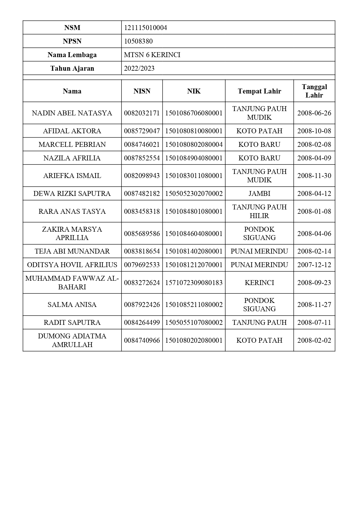 Selamat Datang di Website Resmi MTSN 6 Kerinci # Jln. Padang Baru, Desa Permai Baru, Tanjung Pauh Hilir, Kecamatan Danau Kerinci Barat, Kabupaten Kerinci, Provinsi Jambi # MTsN 6 Kerinci Menerima Peserta Didik Baru Tapel 2025/2026 # Madrasah Hebat Bermartabat # Selamat Datang di Website Resmi MTsN 6 Kerinci