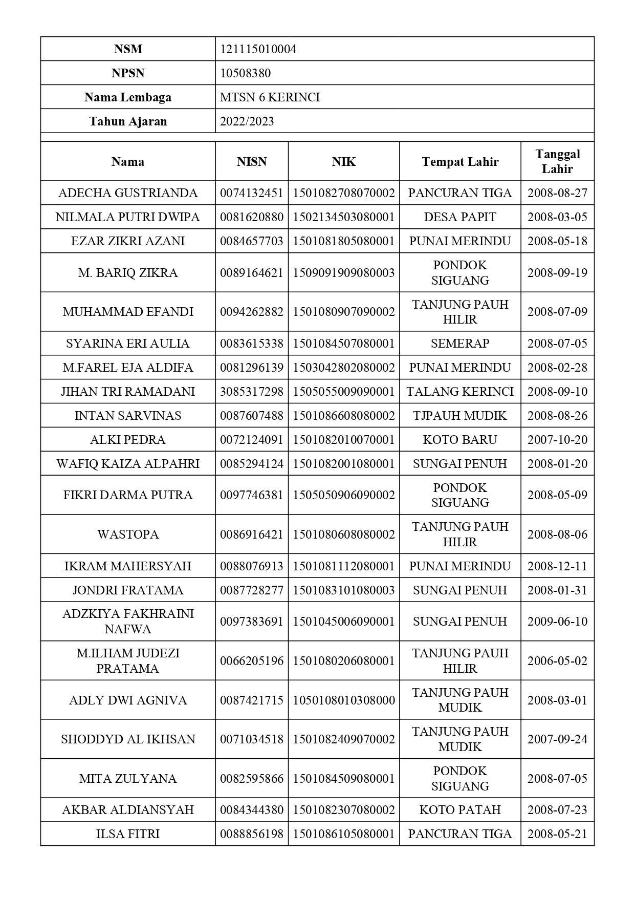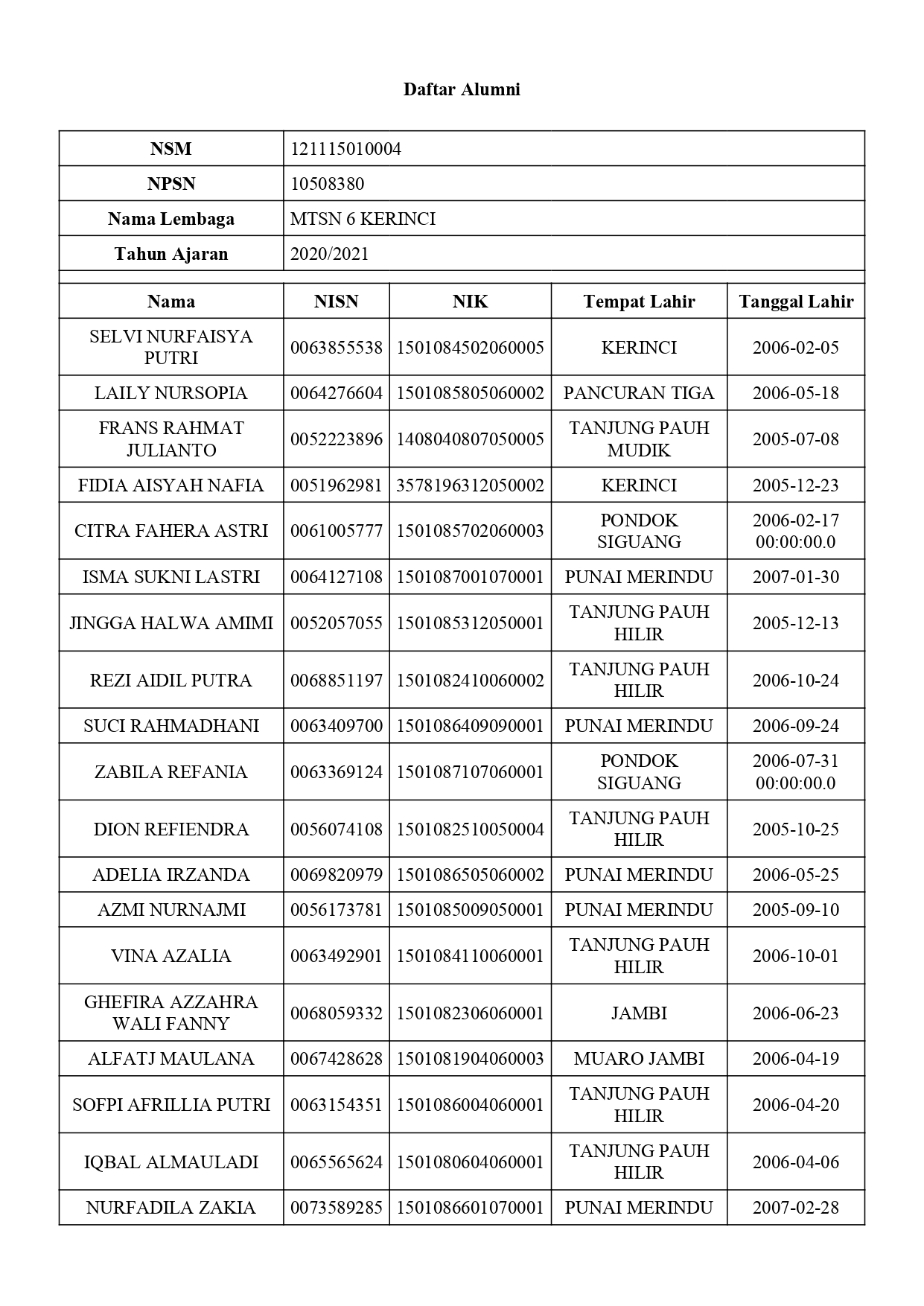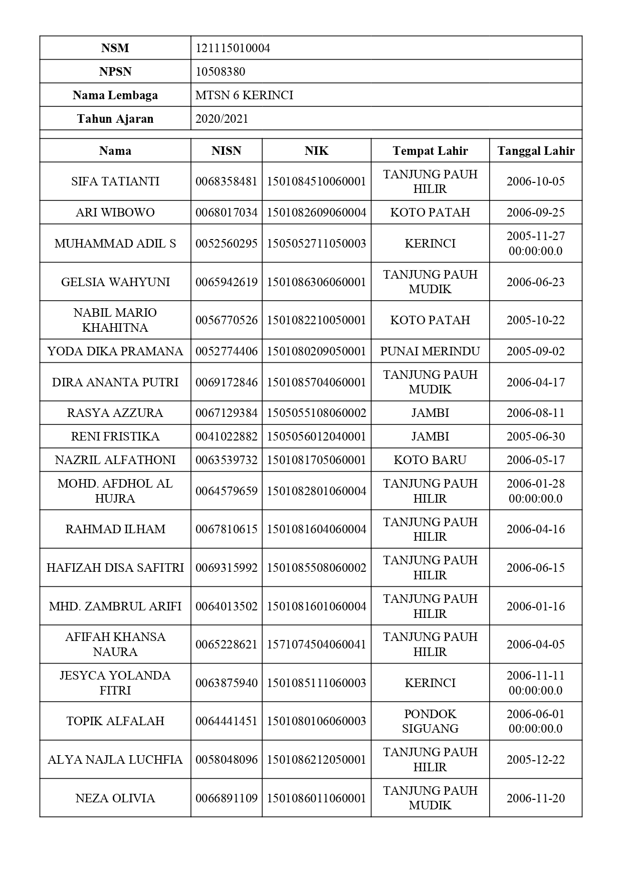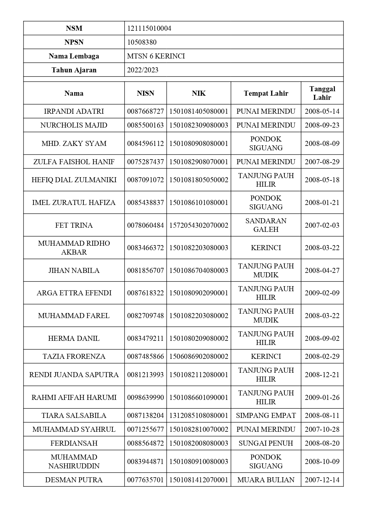 Selamat Datang di Website Resmi MTSN 6 Kerinci # Jln. Padang Baru, Desa Permai Baru, Tanjung Pauh Hilir, Kecamatan Danau Kerinci Barat, Kabupaten Kerinci, Provinsi Jambi # MTsN 6 Kerinci Menerima Peserta Didik Baru Tapel 2025/2026 # Madrasah Hebat Bermartabat # Selamat Datang di Website Resmi MTsN 6 Kerinci
